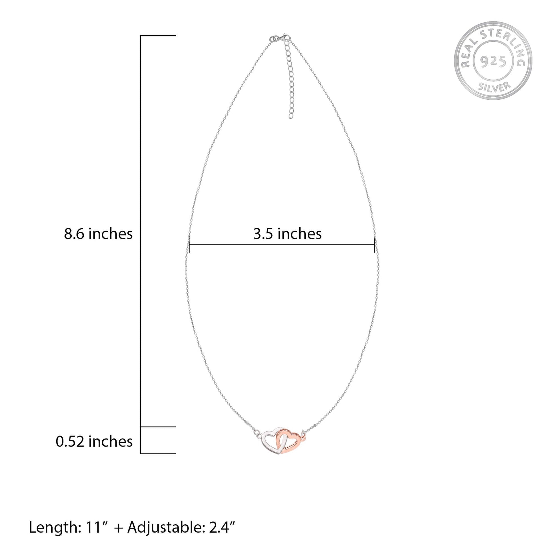 This Silver Dual Tone Interlocked Heart Pendant is handcrafted with love, just for YOU! An intricately crafted beauty, this pendant features two sparkling hearts - one in silver and the other in rose gold, for that little touch of class.