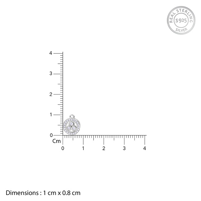 This silver necklace for women features two circular charms suspended from a central link on the chain. Each charm is bordered with sparkling zircons and three larger, bezel-set circular zircons at its centre.