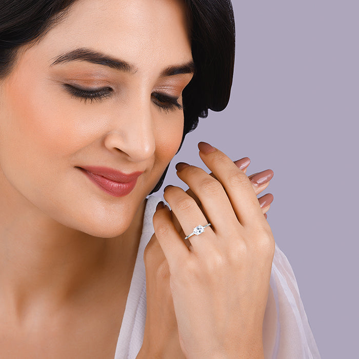Radiate with the Silver Ethereal Solitaire Ring, an exquisite token of your inner and outer beauty, capturing hearts and memories.