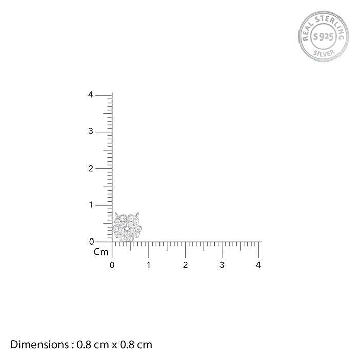 This silver necklace for women showcases a cluster of heart-shaped zircons arranged in a circular floral shape.