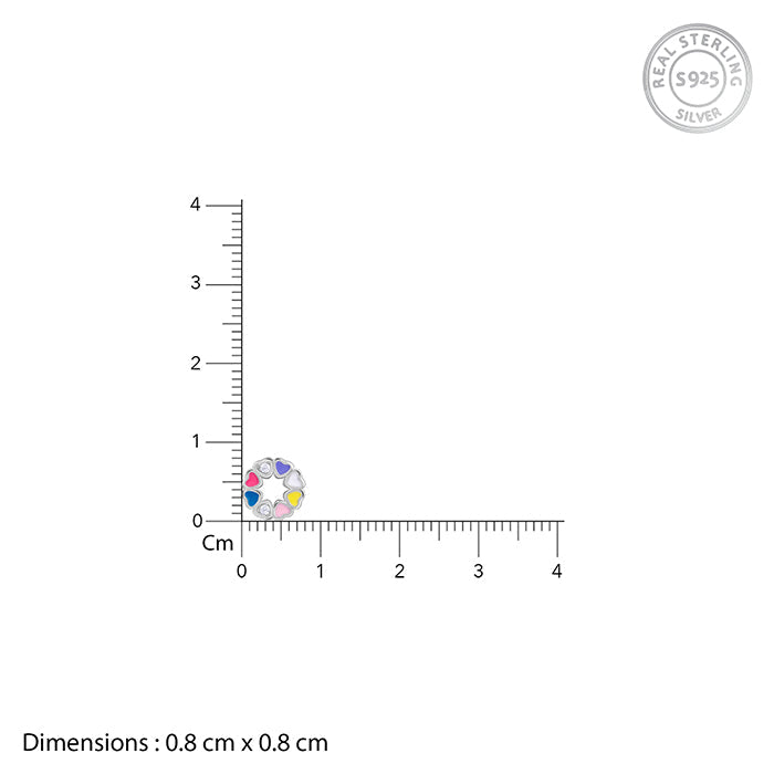 These silver studs for kids feature several heart motifs filled with multicoloured enamel and sparkling zircons.