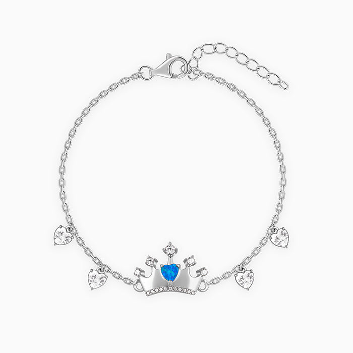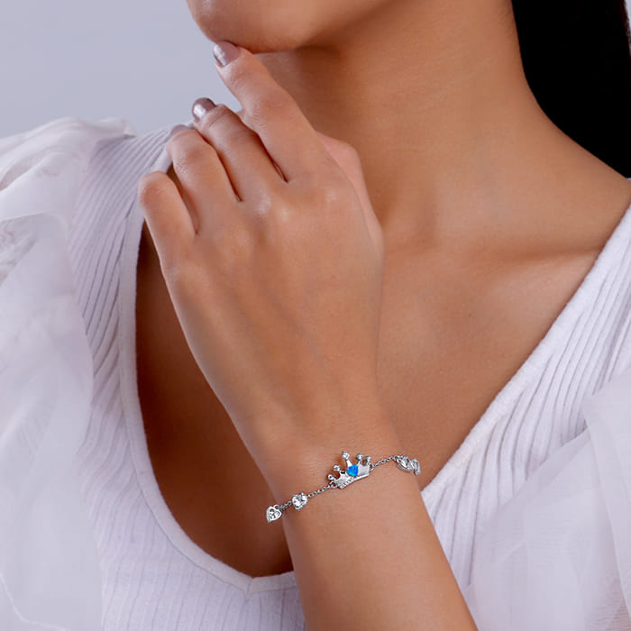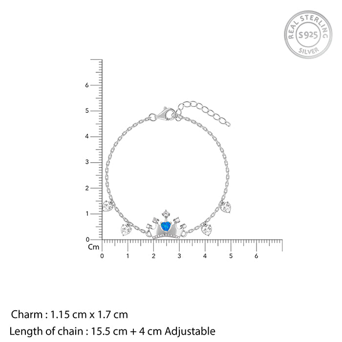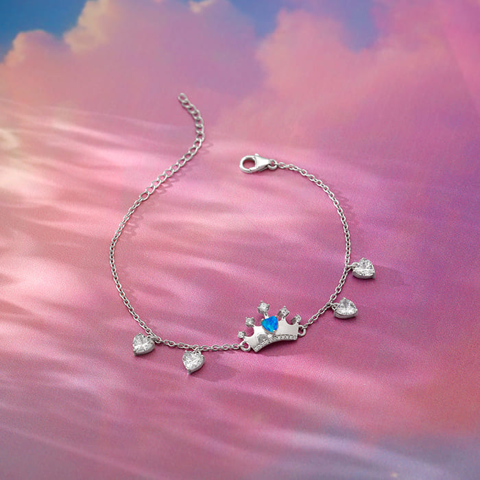 This silver bracelet for women features a crown motif set with a heart-shaped blue opal stone and is also studded with zircons. The chain also features four heart-shaped zircons. Let the stunning elegance of Trendy Freak Sky High inspire you to chase every dream and celebrate every milestone.