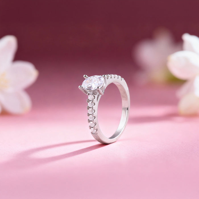 Imagine a piece that doesn’t just sit on your hand, but flaunts every look you wear. This silver ring, with its dazzling oval zircon at the centre and a band sparkling with tiny zircons, is more than jewellery.