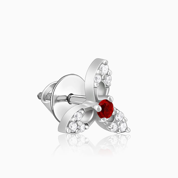 These silver earrings feature a three petal motif studded with zircons nestling a red stone in the centre. Celebrate your moments of passion with Trendy Freak’s Red Romance Collection.
