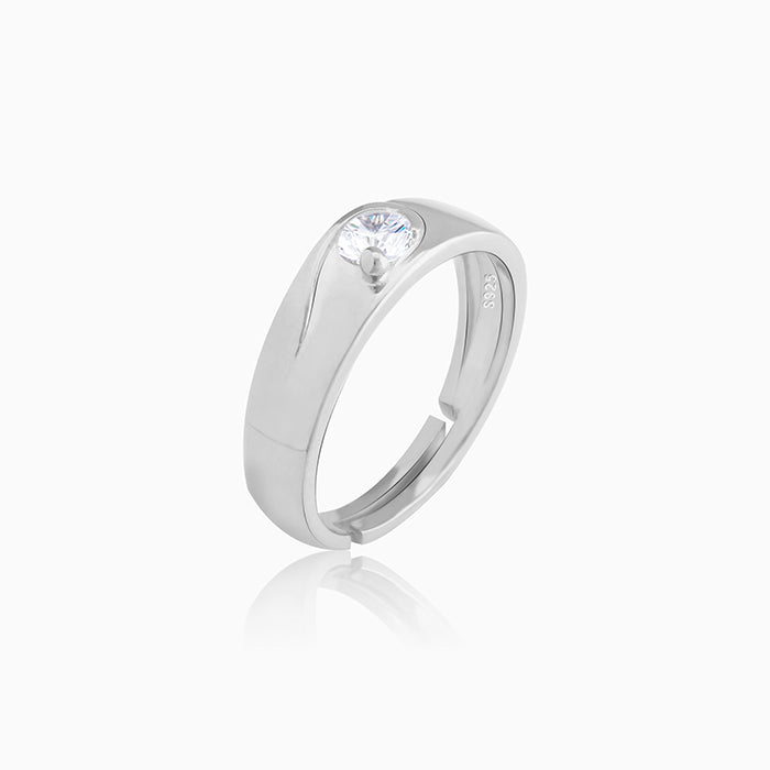 The Silver Glowing in Love Couple Rings have a classic design with a studded zircon on both the rings with a silver finish.