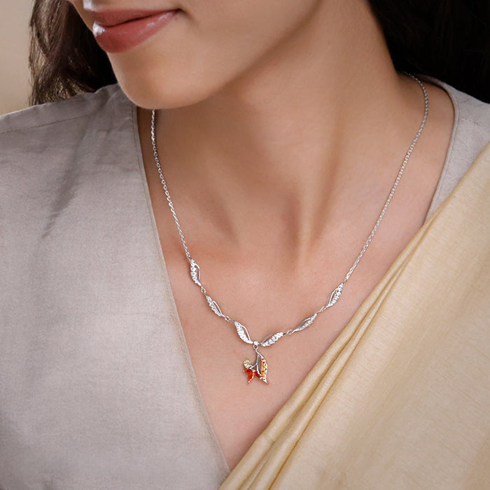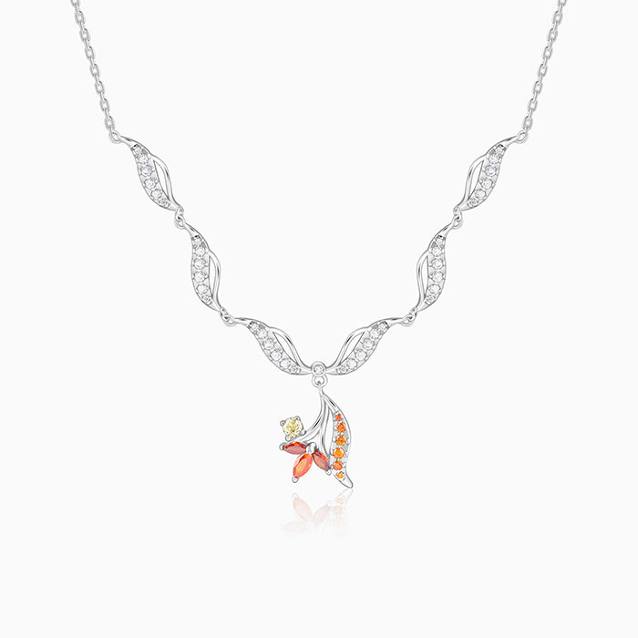 This silver necklace for women features a flower and leaf design. Both designs are studded with colourful zircons. The chain is accented with leaf motifs, studded with zircons. Designed in Italy. Inspired by India. Embrace the goddess within with the Shakti Collection by Trendy Freak x Anna Giulia Chicco.