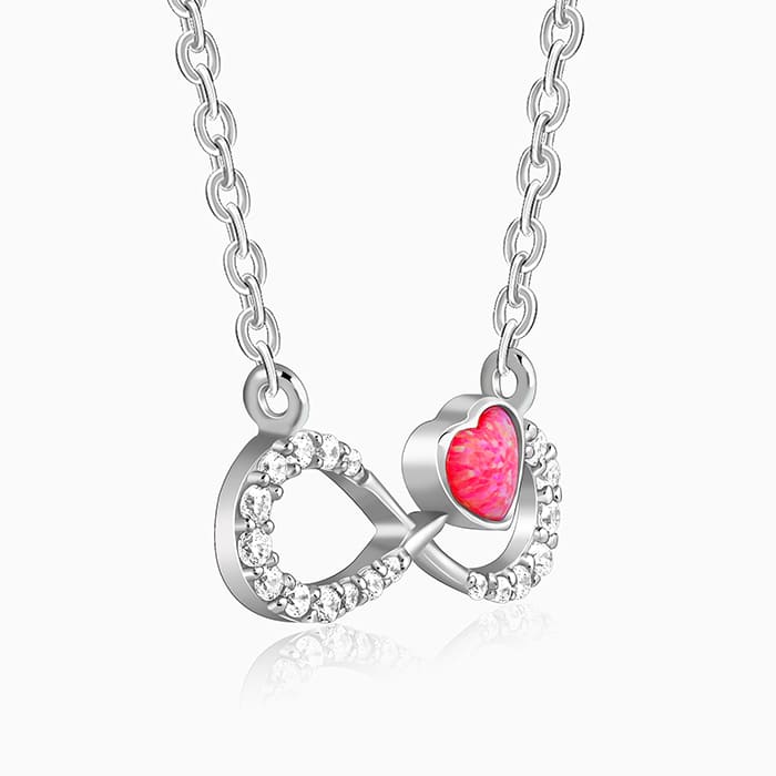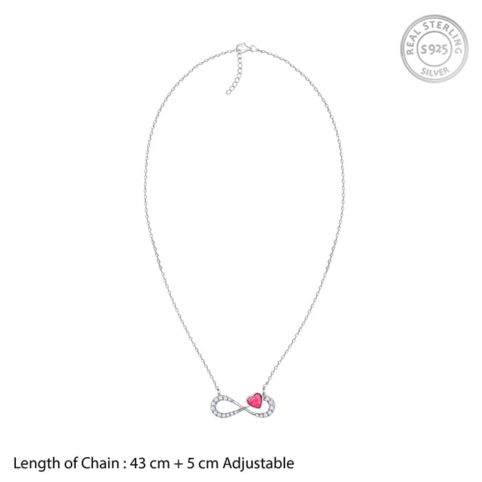This silver necklace features an infinity motif studded with zircons. A cute heart motif set with a pink opal stone sits on the infinity. Let the stunning elegance of Trendy Freak Sky High inspire you to chase every dream and celebrate every milestone.