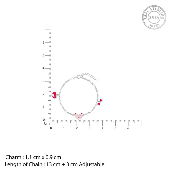 This silver kids bracelet features three motifs: a colourful enamel Trendy Freak Boo, and a heart and bow, both accented with enamel and zircon.