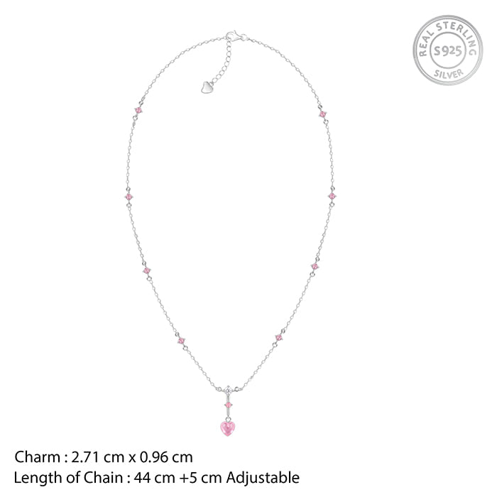 This women's silver necklace features a drop with a heart motif pendant in pink quartz. The chain also beautifully features pink-coloured stone accents. Fall in love all over again with our exclusive Valentine’s Collection: #WhatTheHeartWants. Here are our curated designs that will speak to your heart.