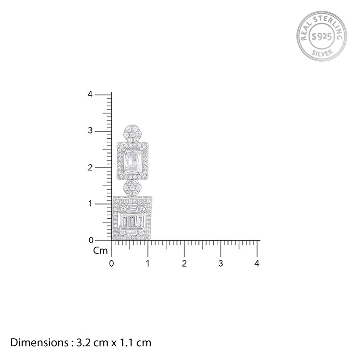 These silver earrings for women feature two rectangular designs set with baguette-cut zircons. A zircon-studded floral motif is placed between the rectangles. Presenting our DIVA Collection - a limited edition silver jewellery meant for the women who own every room. Be the star of the party, always.