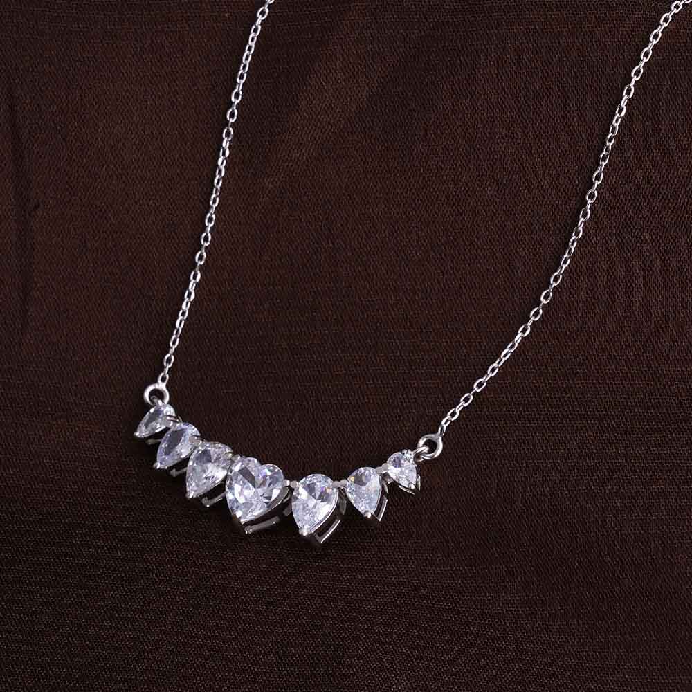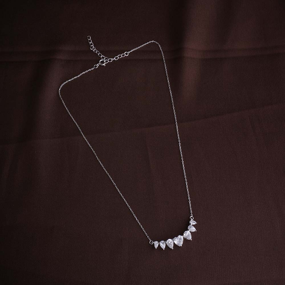 The Silver Marquise Necklace exudes refined elegance with a modern twist. Crafted in 925 sterling silver with a rhodium finish, it features seven sparkling marquise-shaped cubic zirconia stones that catch light beautifully. Perfect for layering or wearing solo, this short necklace adds subtle glamour and sophistication to both everyday outfits and special occasions, making it a versatile staple in any jewellery collection.