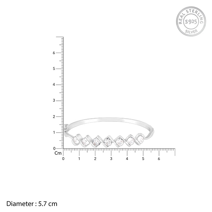 This silver bracelet has an array of squares enclosing single zircon stones in a single row.