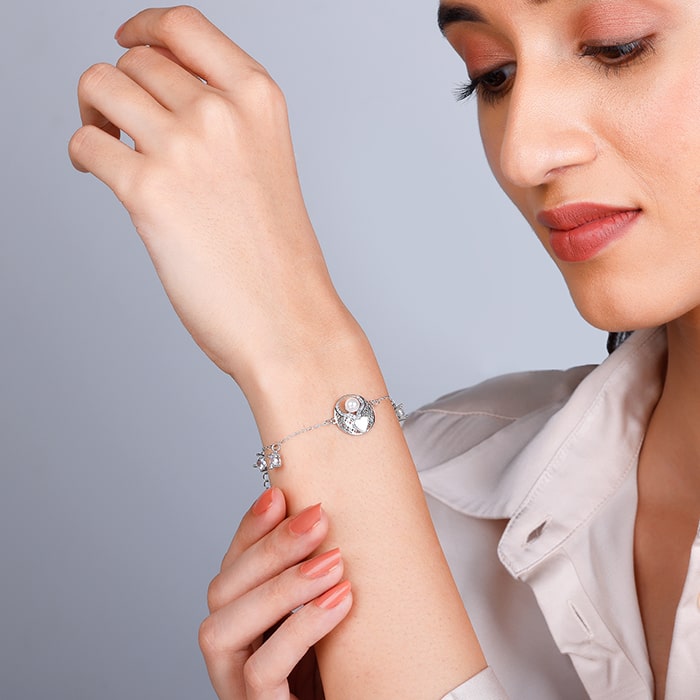 The Silver Pearl Whisper Bracelet is inspired by the ocean's gentle murmur that echoes serenity, inviting us to embrace moments of tranquillity and peace.