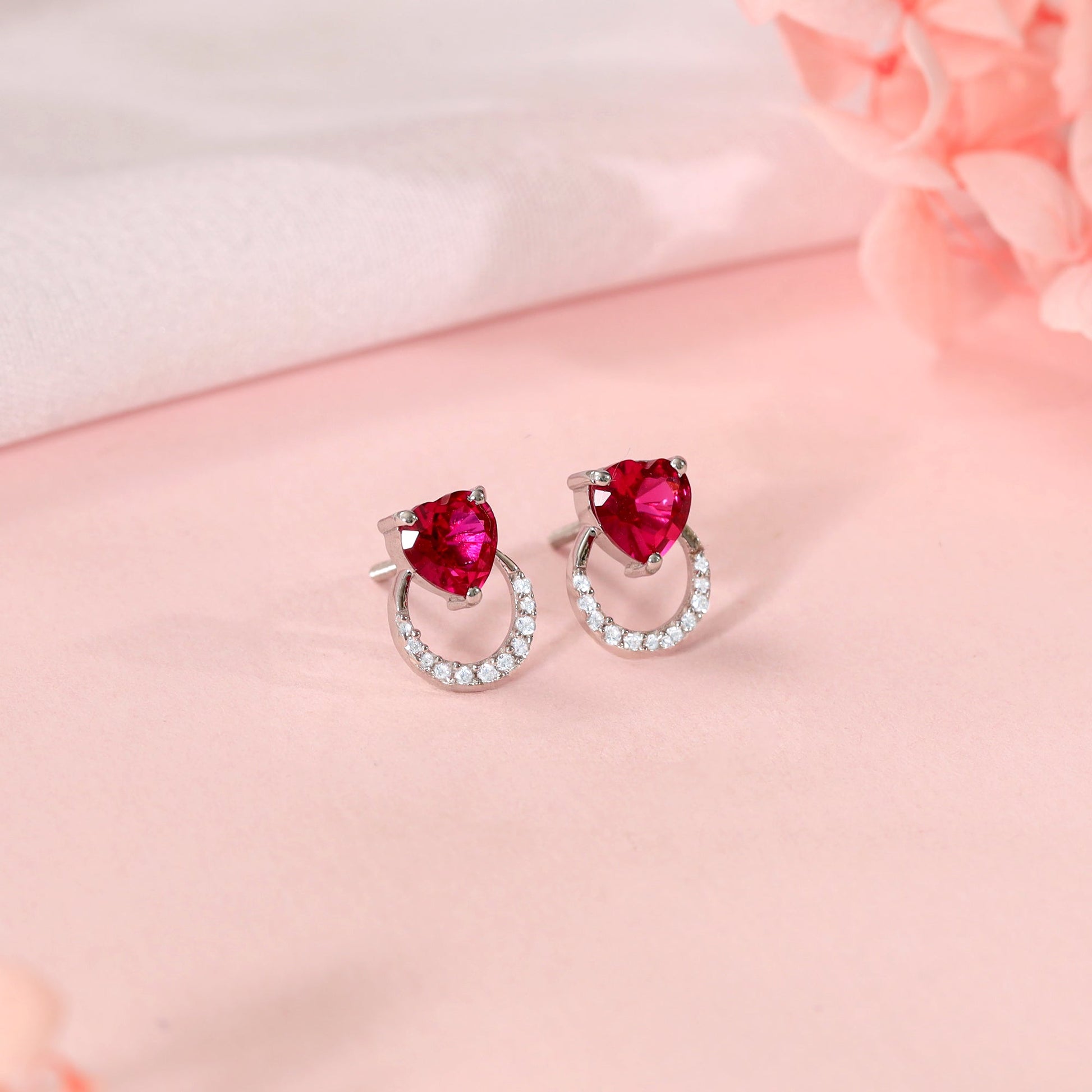 These silver earrings feature a heart motif set with pink stone and a hoop studded with zircons attached below it. Celebrate your moments of passion with Trendy Freak’s Red Romance Collection.
