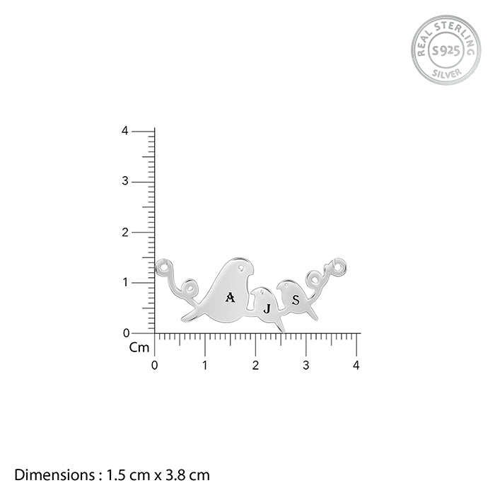 This silver personalised pendant for women features three bird motifs on a branch with initials of your choice engraved on each.