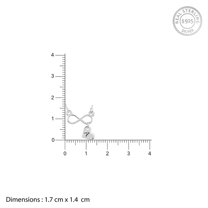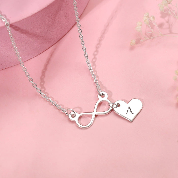 This personalised silver infinity charm necklace features an infinity motif with a dangling heart.