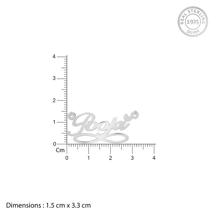 This personalised silver jewellery features an infinity motif just below the name you choose to personalise.