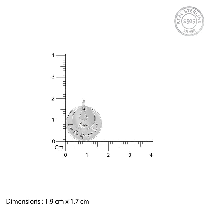 This silver personalised necklace for women features a circular silver charm with engravings of your choice, as the base. A circular charm sits on top, also with engravings of your choice. A cute little heart motif sits on the top, completing the triple layer combo.