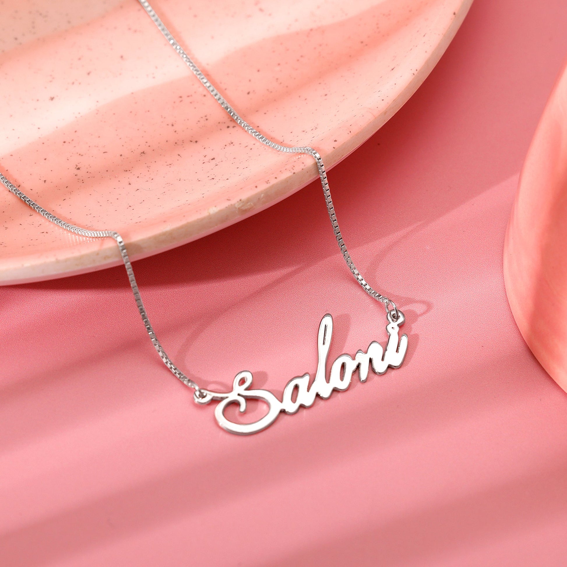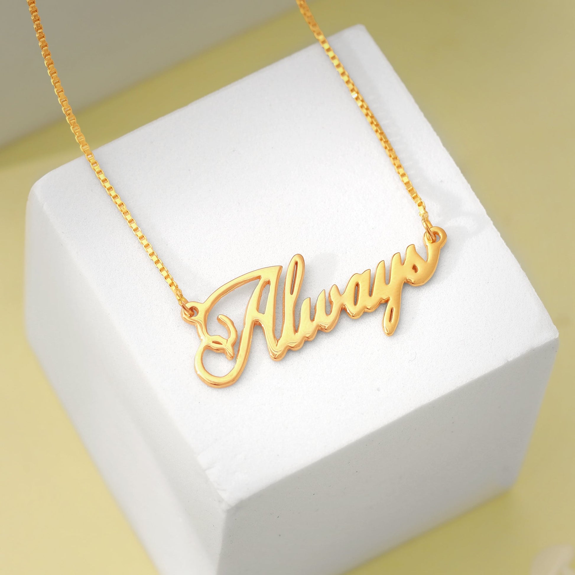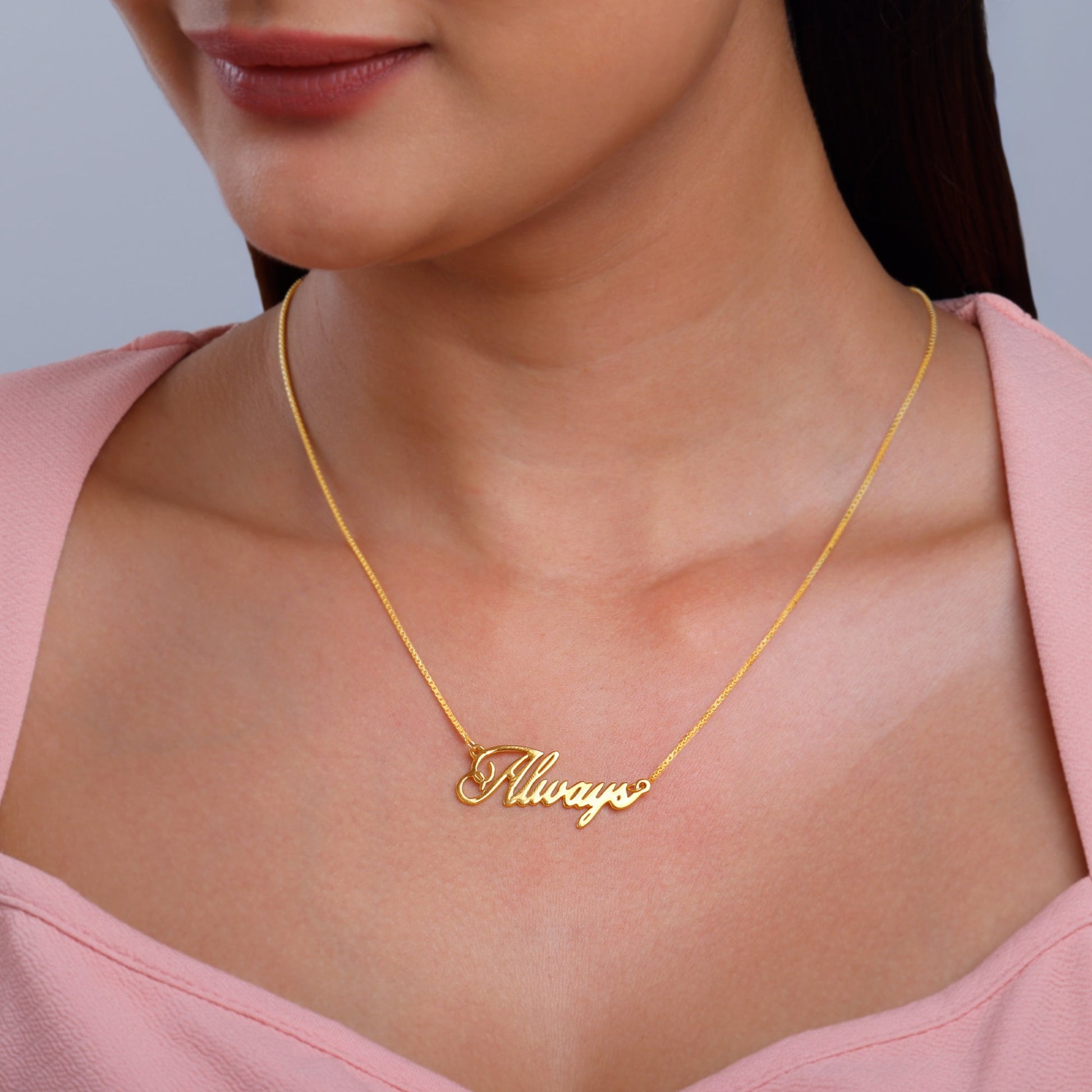 The Personalised Eternal Necklace features a simple design with a customisable name in English and in cursive font.