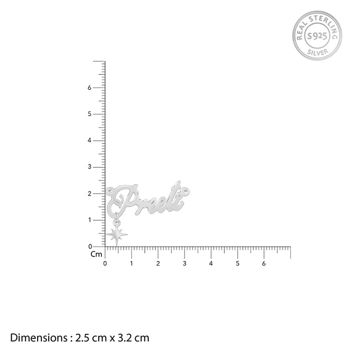 This silver personalised necklace for women features the name of your choice with a star charm dangling from the first letter.