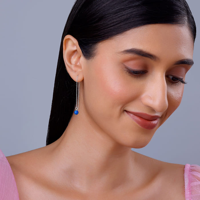These silver sui dhaga earrings feature a dangling opal stone. Let the stunning elegance of Trendy Freak Sky High inspire you to chase every dream and celebrate every milestone.