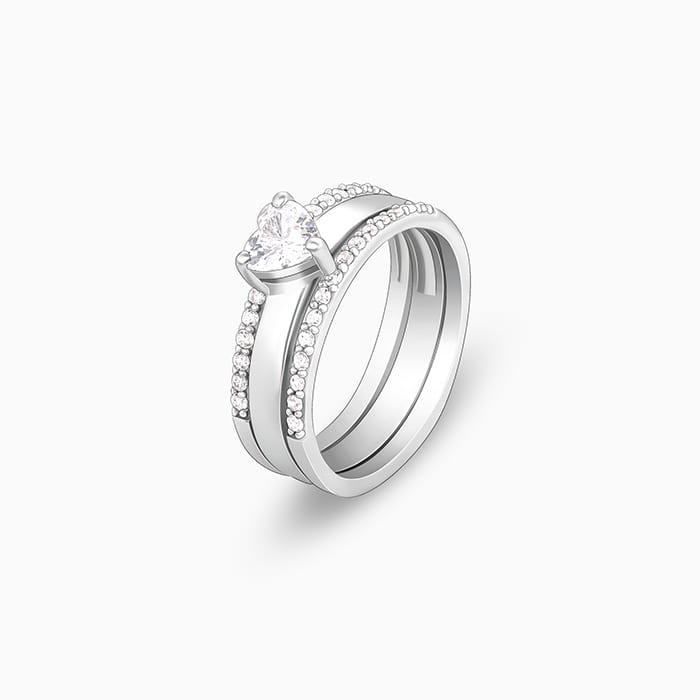 Silver Radiant Heart 2-in-1 Rings