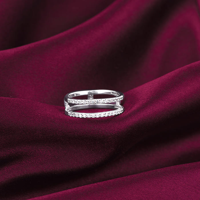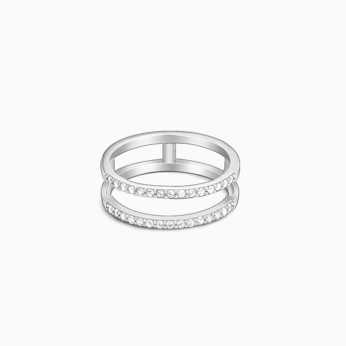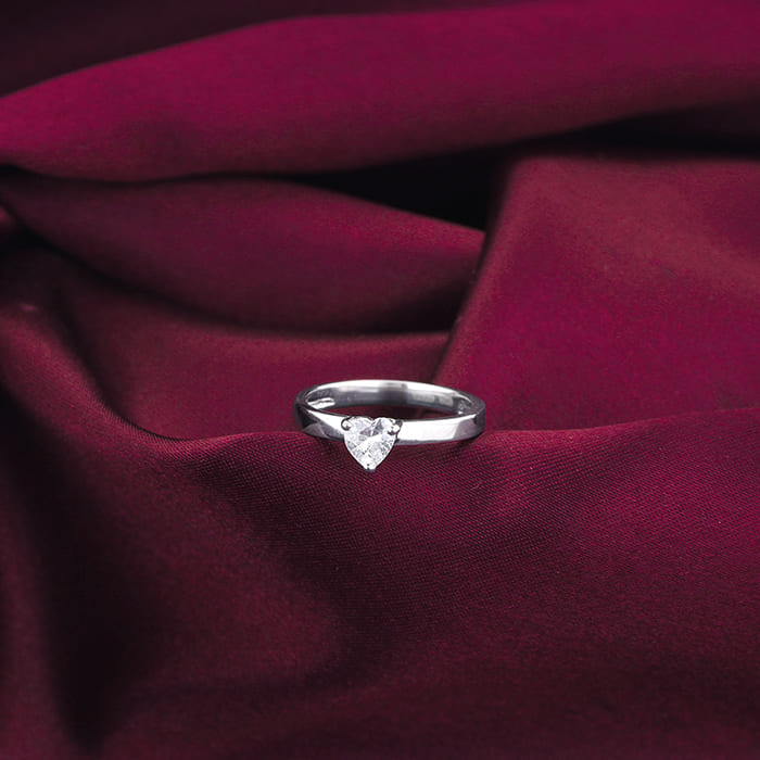 This silver ring offers a remarkable detachable option. One part of the ring is adorned with zircons on the top and bottom. The other part showcases an intricate heart motif delicately embellished with a single zircon.