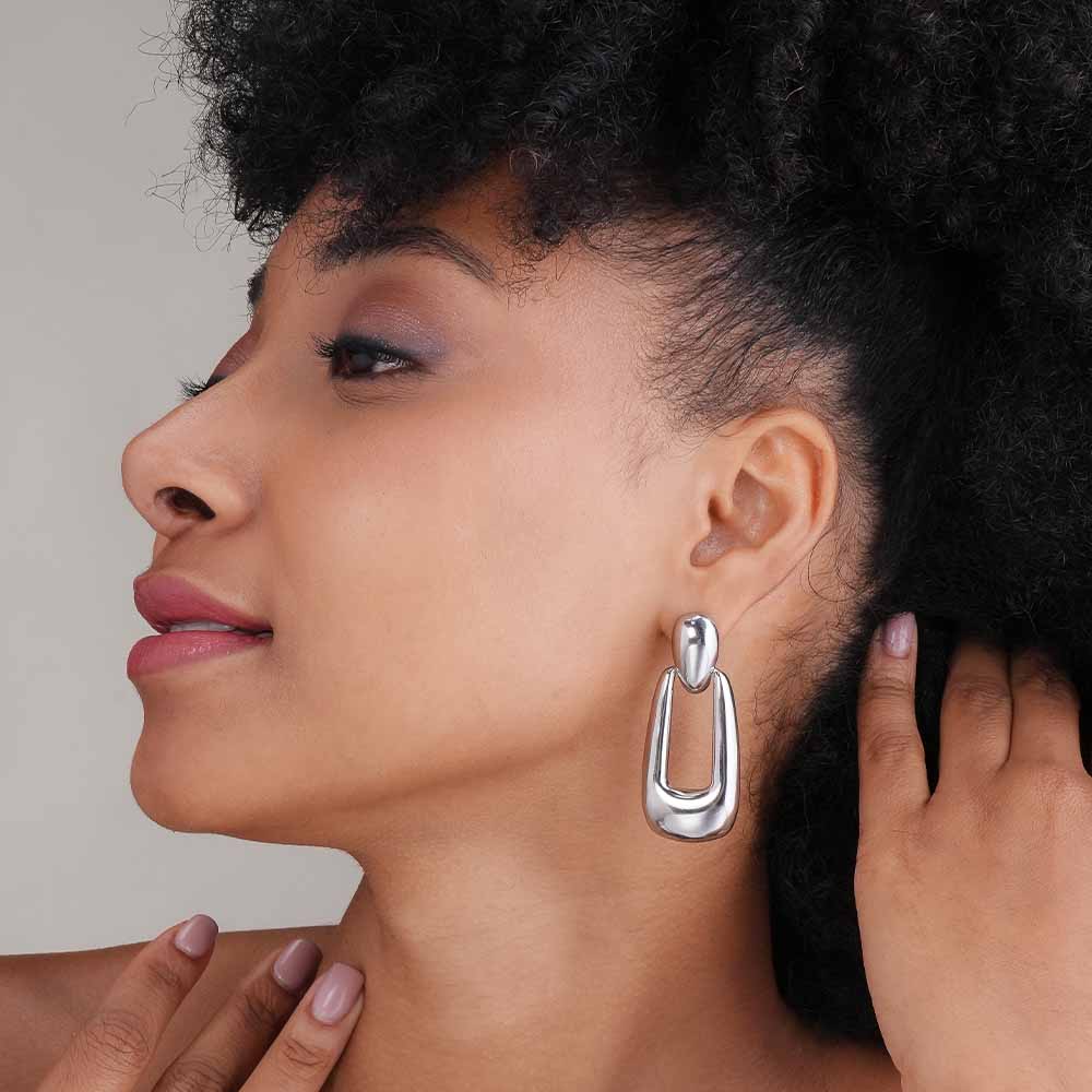 Silver Rectangle Buckle Drop Earrings