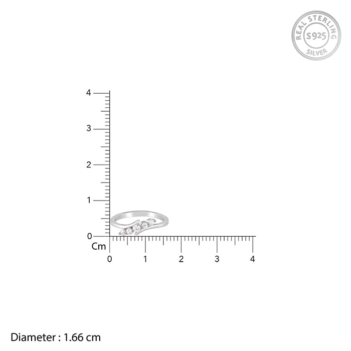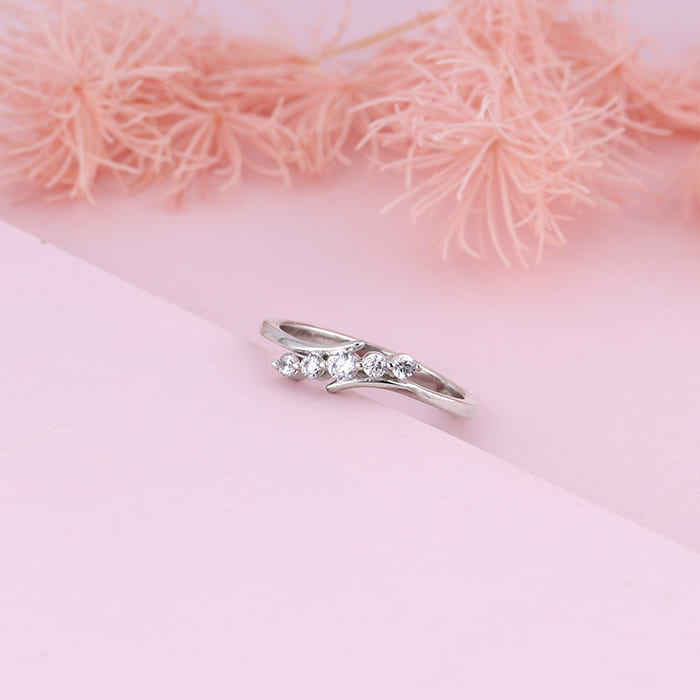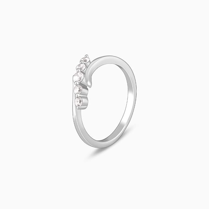 This silver ring features a slanted design studded with zircons set in a bypass shank.