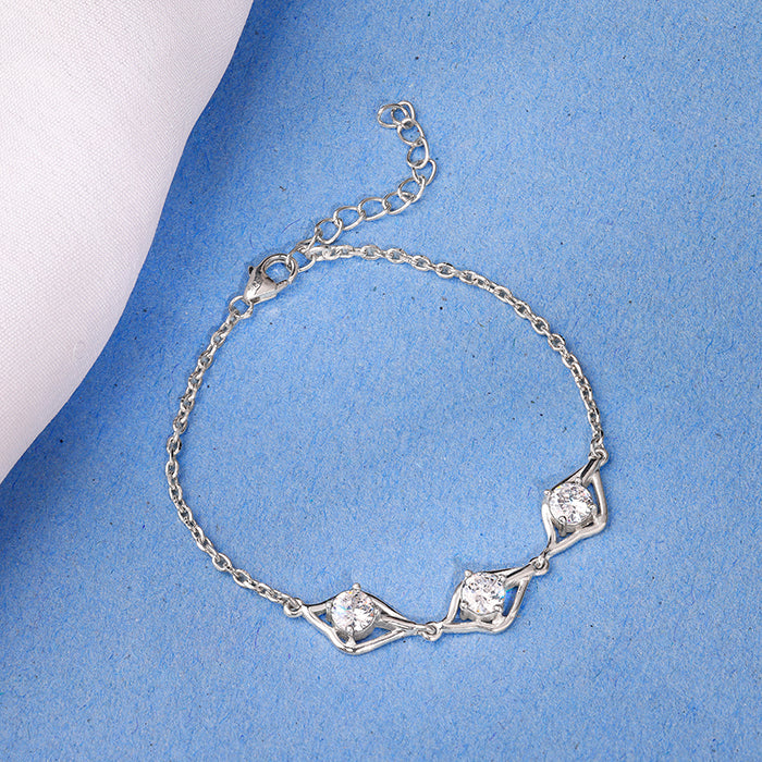 This silver bracelet for women features three droplet-shaped motifs. Each has a zircon at the centre.