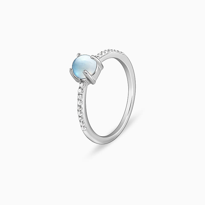 This silver ring for women showcases a circular moonstone at the centre, surrounded by zircon along the band. Let the stunning elegance of Trendy Freak Sky High inspire you to chase every dream and celebrate every milestone.