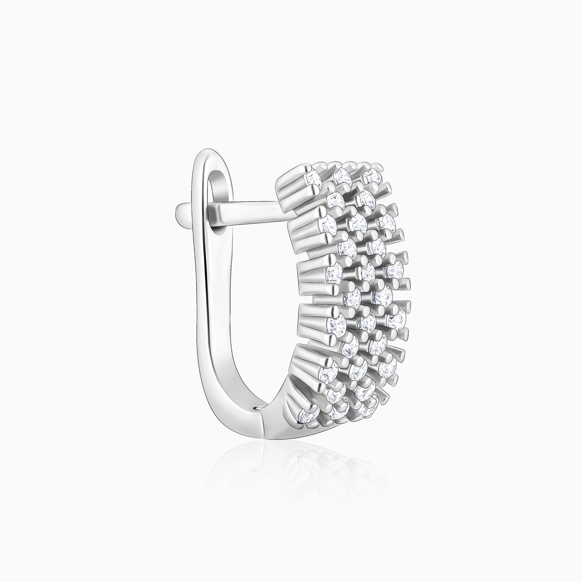 These Silver Sparkling Shine Hoops are handcrafted with love, just for YOU! Dazzling zircons are arranged in a checkered pattern on a sterling silver body. These hoops have been crafted for a singular purpose – to make YOU stand out.