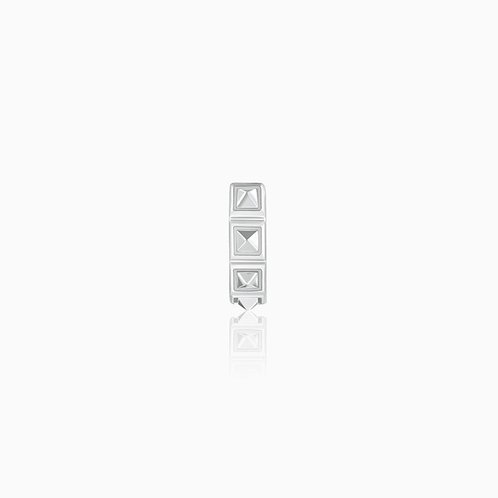 These silver hoop earrings for men feature a square shape with a spike design at its centre.