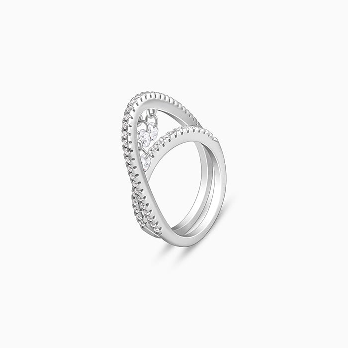 This silver ring has a dual-layer design studded with zircons nestling zircon charms.