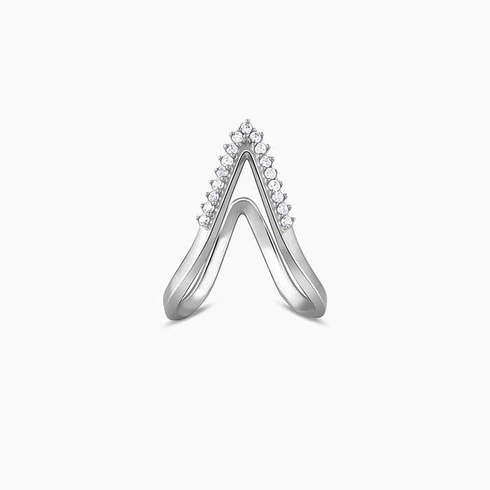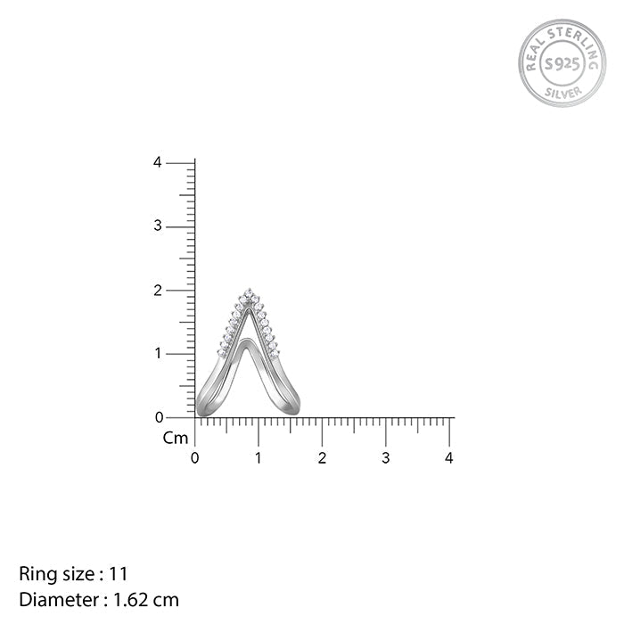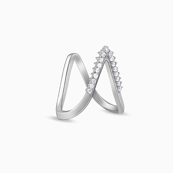 This silver ring features a Vanki design with zircons set in it.