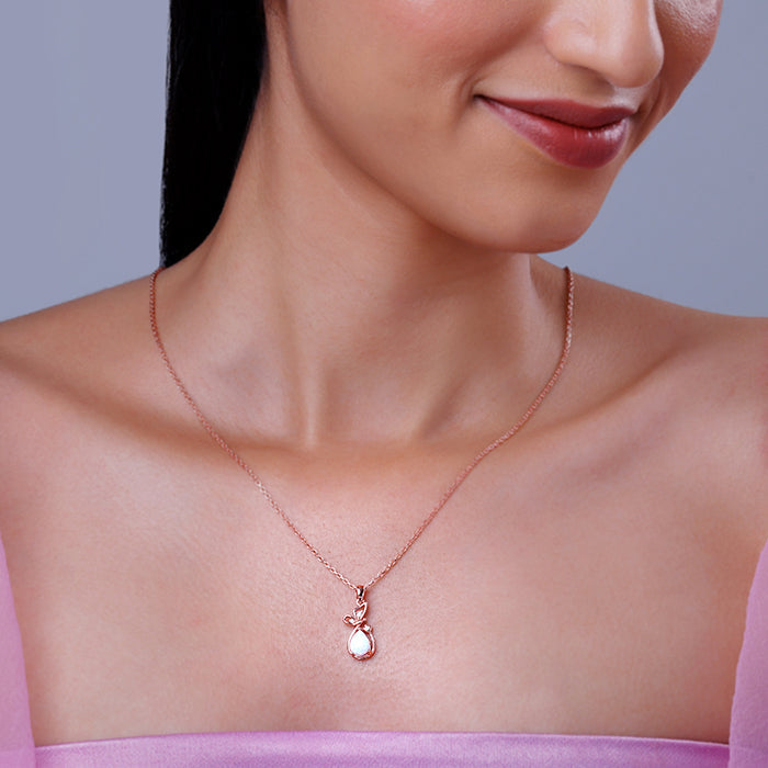 This rose gold plated pendant features half a butterfly motif, extending into a flower bud, accentuated by zircons. A white opal sits cradled in the motif. Let the stunning elegance of Trendy Freak Sky High inspire you to chase every dream and celebrate every milestone.