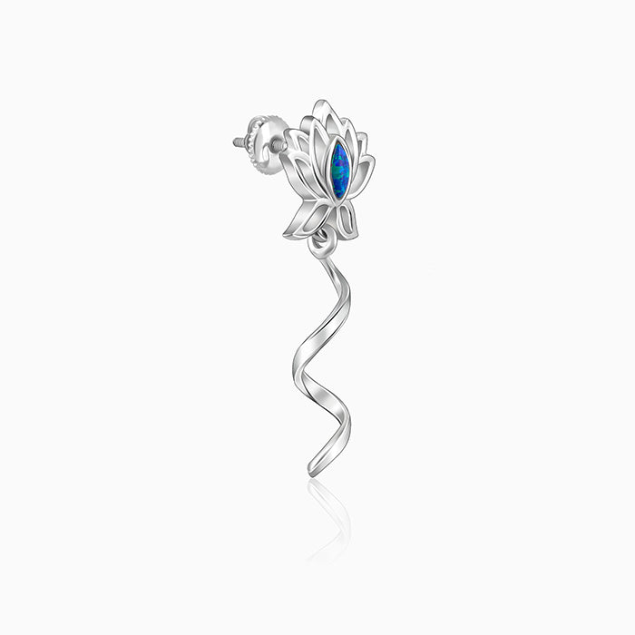 This pair of silver earrings features an elegant lotus motif with an extension. A teardrop-shaped motif with a blue opal stone accentuates the motif further. Let the stunning elegance of Trendy Freak Sky High inspire you to chase every dream and celebrate every milestone.