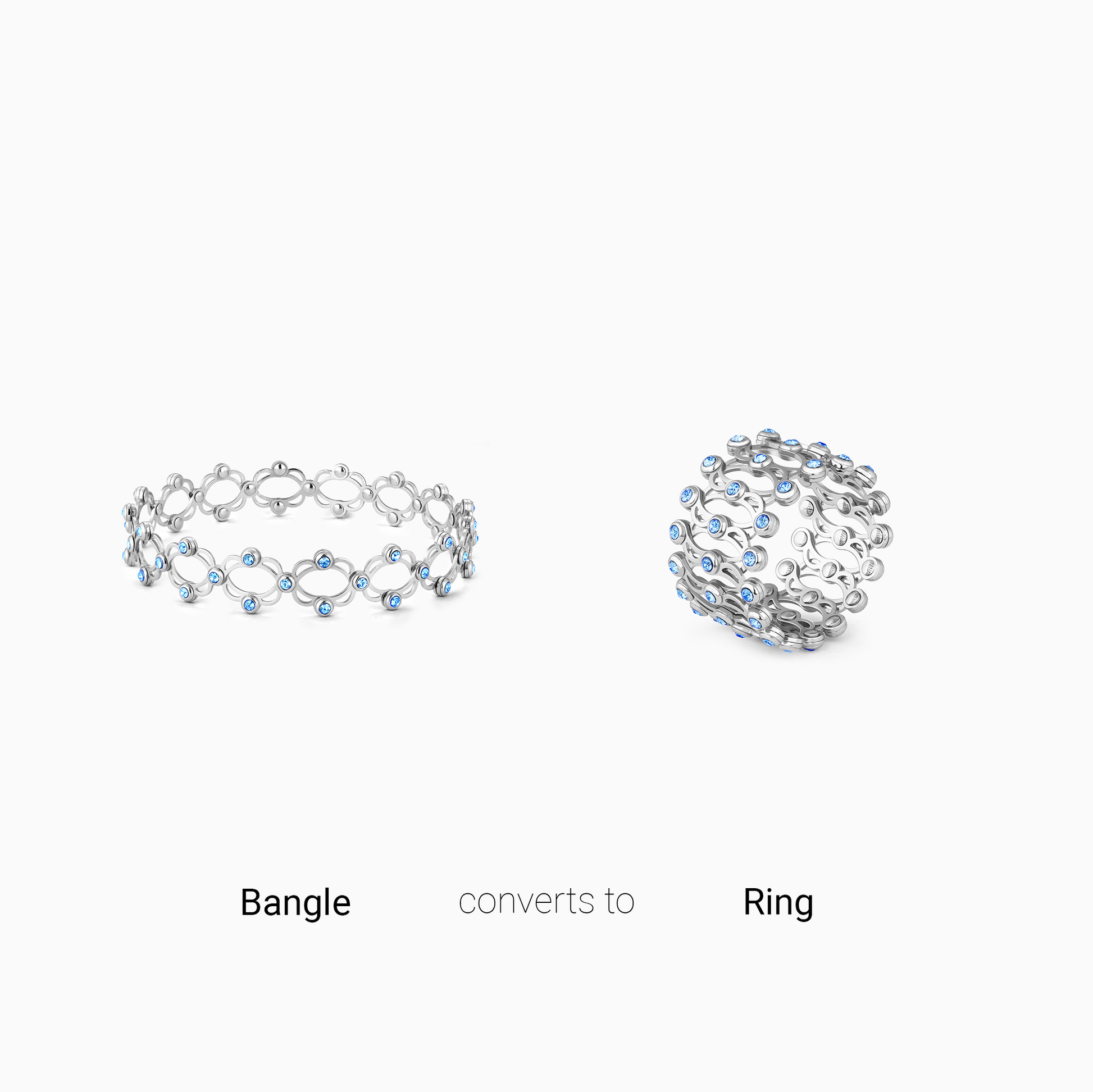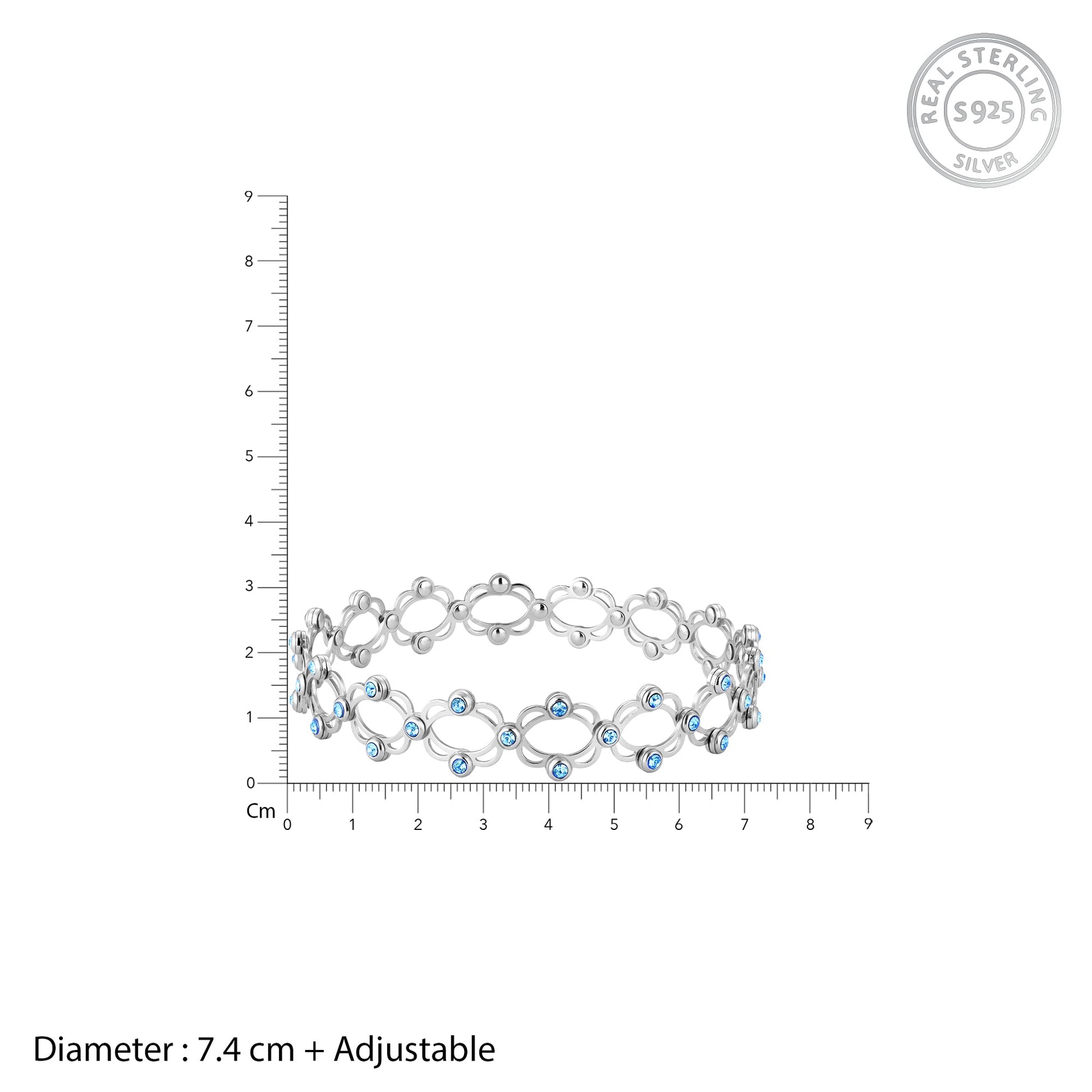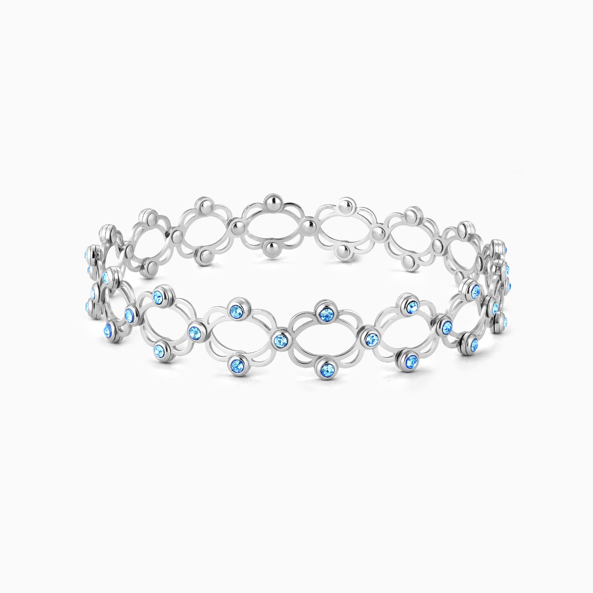 This bracelet features oval motifs with a flower motif placed between them, all dotted with aqua-blue stone, adding a touch of timeless elegance.