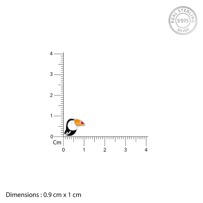 These silver earrings for kids feature a toucan design decorated in enamel tones.