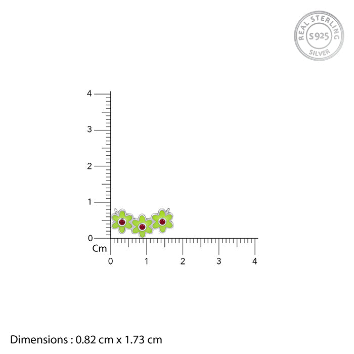 This silver necklace for kids features a triple floral arrangement accented with enamel. A coloured stone is placed at the centre of each flower for a bright and cheerful touch.