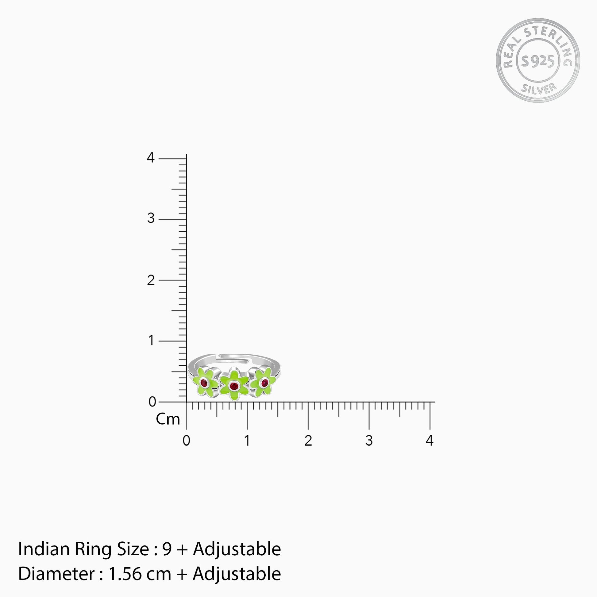 Imagine three happy flowers smiling and waving hello as you run and jump. This ring is a dainty treasure, made just for kids who love to smile.