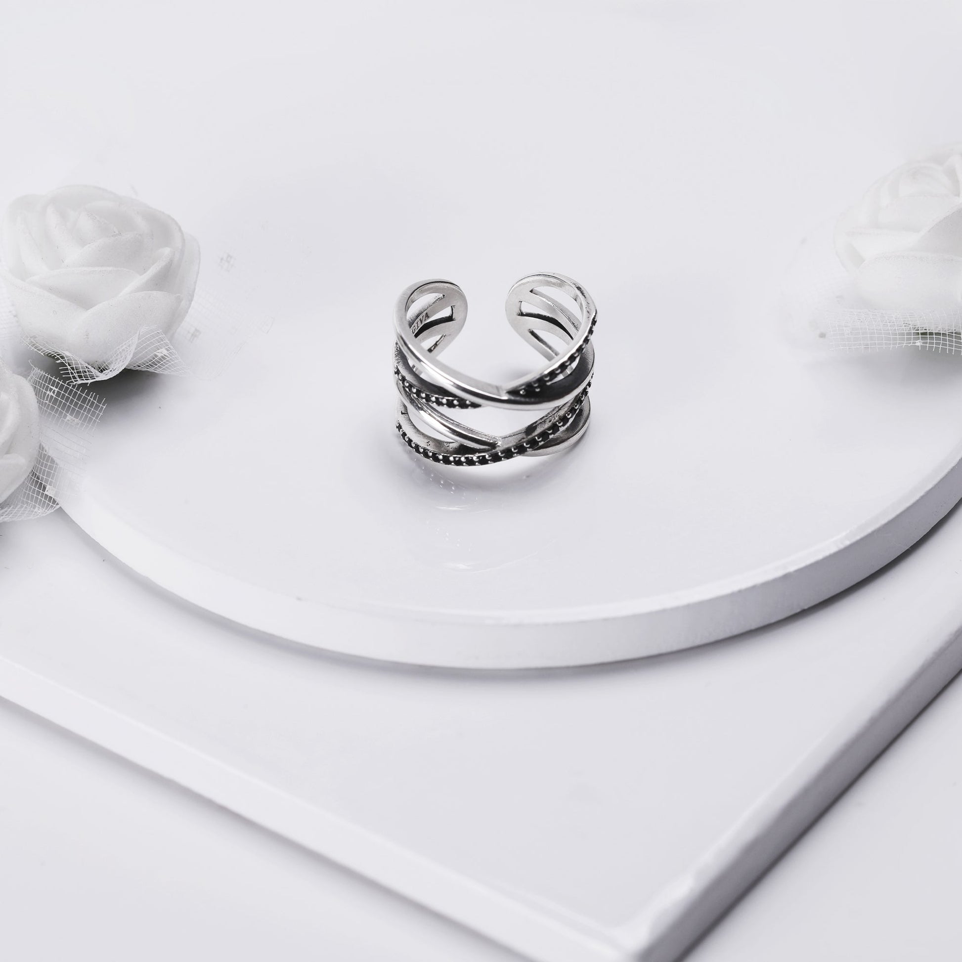 Life is made of various moments and memories. We weave these small pieces into something grand that's close to our hearts. Inspired by the woven wonder that's the journey our lives, comes this Silver Weave Black Zircon Ring!