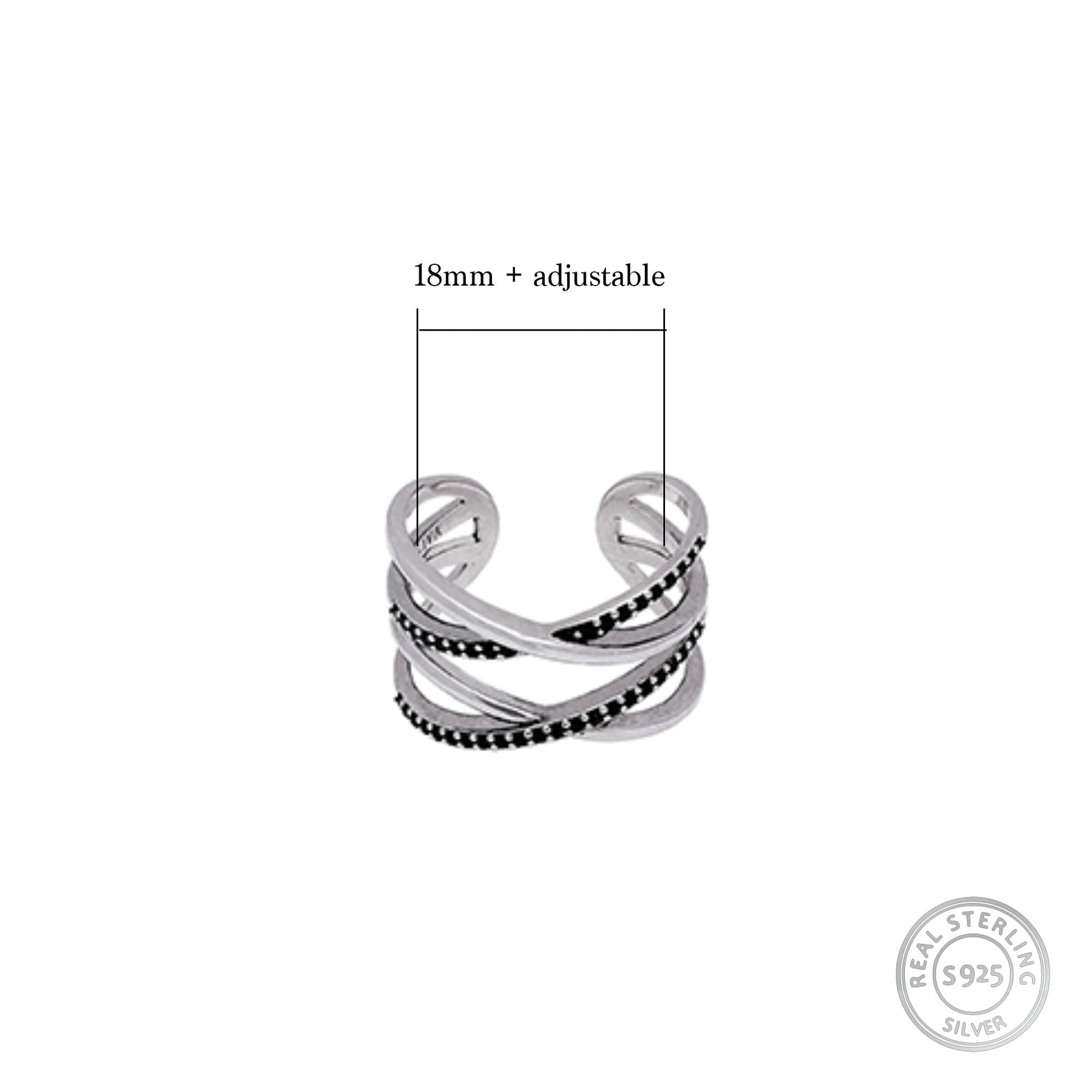 This Silver Weave Black Zircon Ring is handcrafted with love, just for YOU! Layers of silver, adorned with dark zircons, are interwoven to create this beauty.