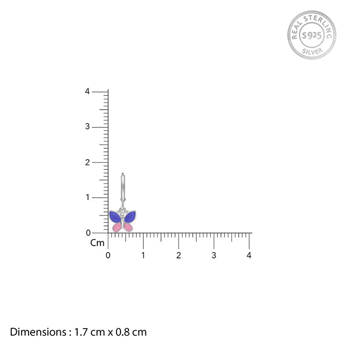 These silver earrings for kids feature an adorable butterfly motif, with its upper and lower wings filled with different-coloured enamel.