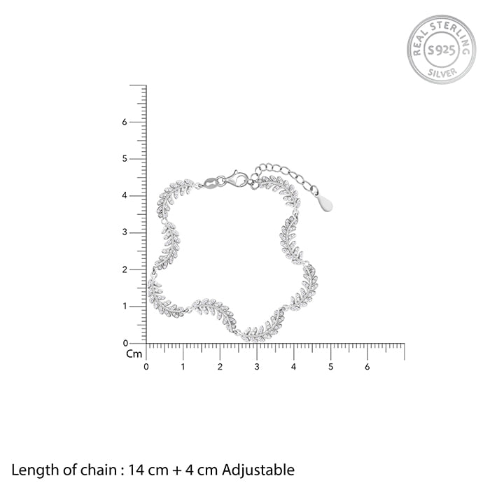 This Silver Woven Leaf Bracelet has been handcrafted especially for YOU! The bracelet has been intricately designed to match nature’s peerless brilliance. With a sequence of interconnected zircon leaves on a silver branch, this bracelet truly evokes the tranquility inherent in nature.