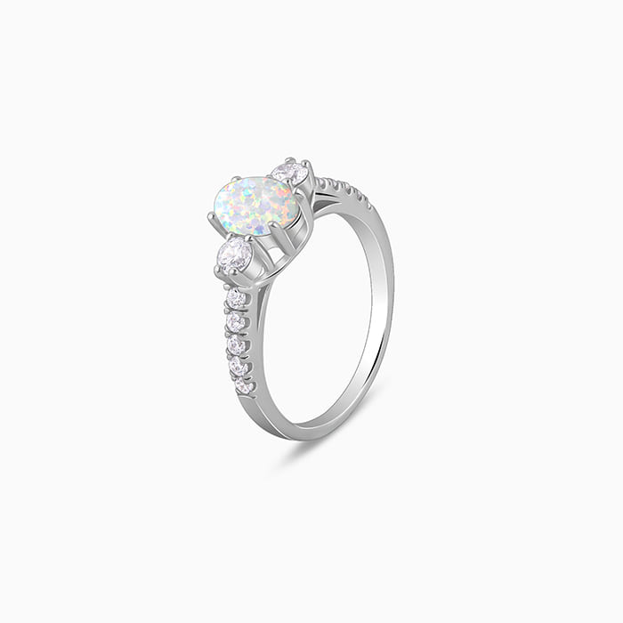 This silver ring features an oval design with an opal stone at the centre and zircons on both sides, studded in the band. Let the stunning elegance of Trendy Freak Sky High inspire you to chase every dream and celebrate every milestone.