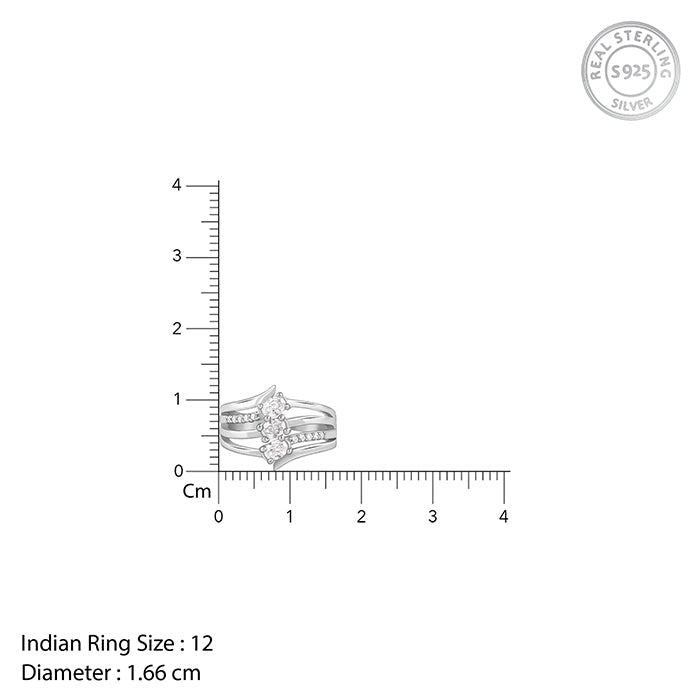 This silver ring for women features a triple-layered band structure with a flowing, wave like design. At the centre, three dazzling zircons are vertically aligned.