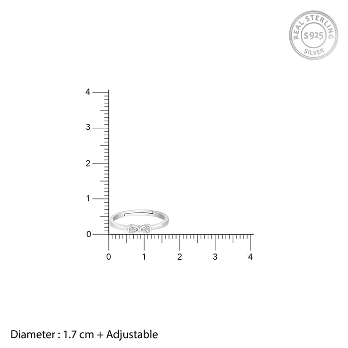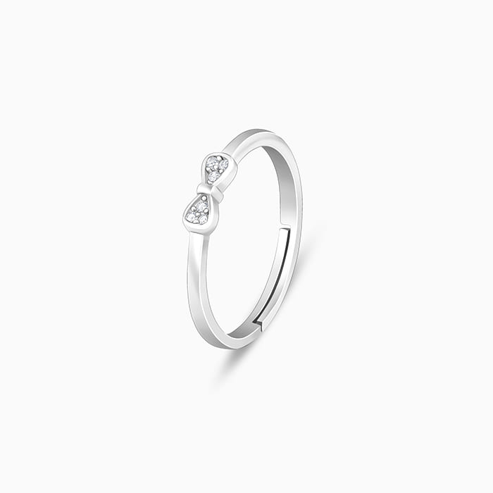 This silver ring has a cute bow-tie shaped embossed piece at its centre which is studded with zircons.