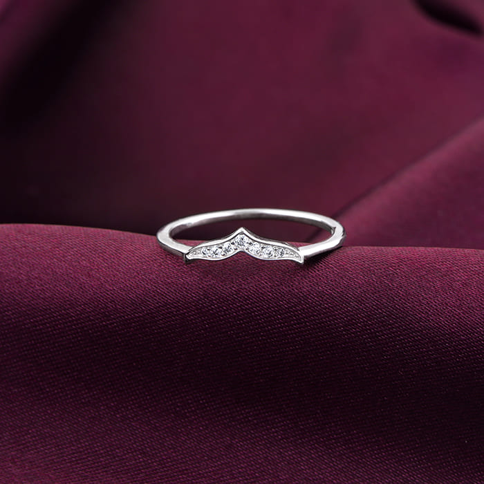 This silver ring features a mermaid tail motif studded with zircons.