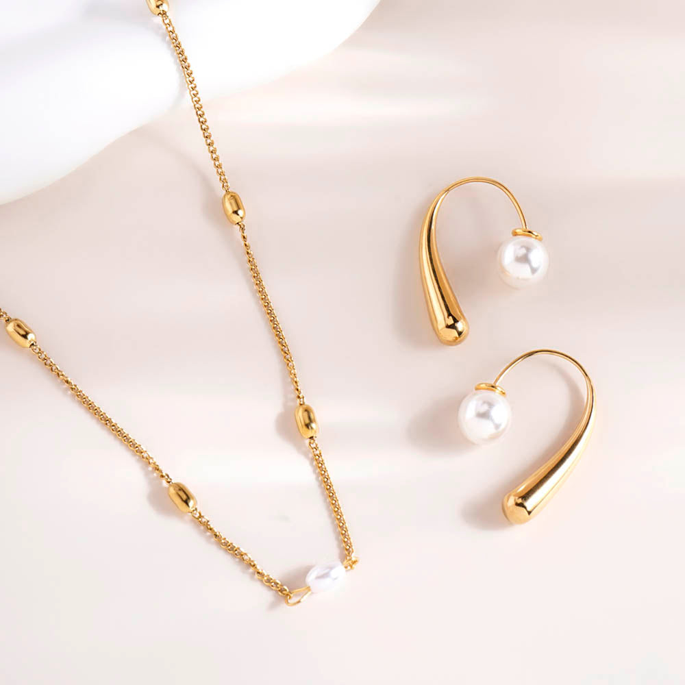 Single Pearl Necklace & Pearl Hook Earrings Combo Set